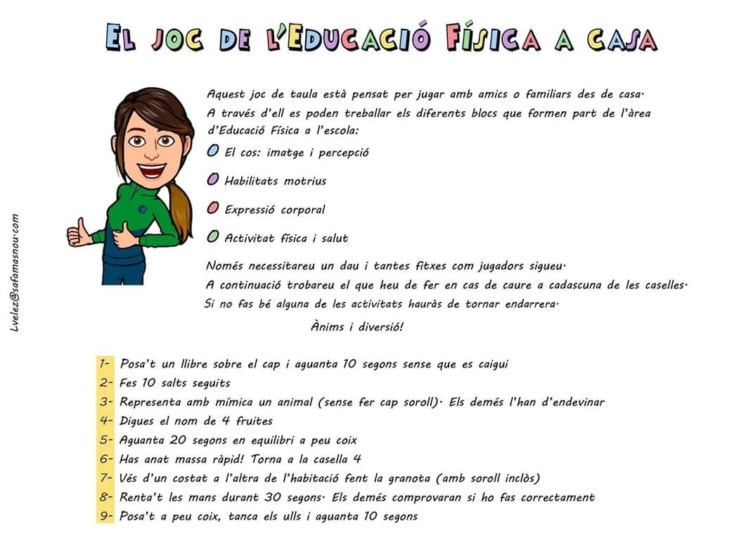 1) En el siguiente video de ROSER PLADEVALL, se explican 10 actividades motrices que podéis realizar en casa para desarrollar nuestras habilidades. Tenéis que mirar el vídeo para aprender los movimientos que hace con su cuerpo. Podéis enviar algún vídeo por WhatsApp para enseñar lo bien que lo hacéis en alguna de estas actividades. Podéis practicar todo lo que queráis hasta que perfeccionéis vuestra técnica.
